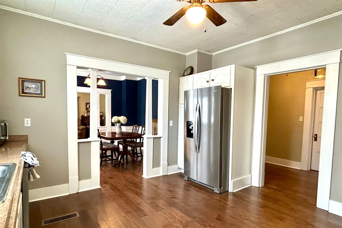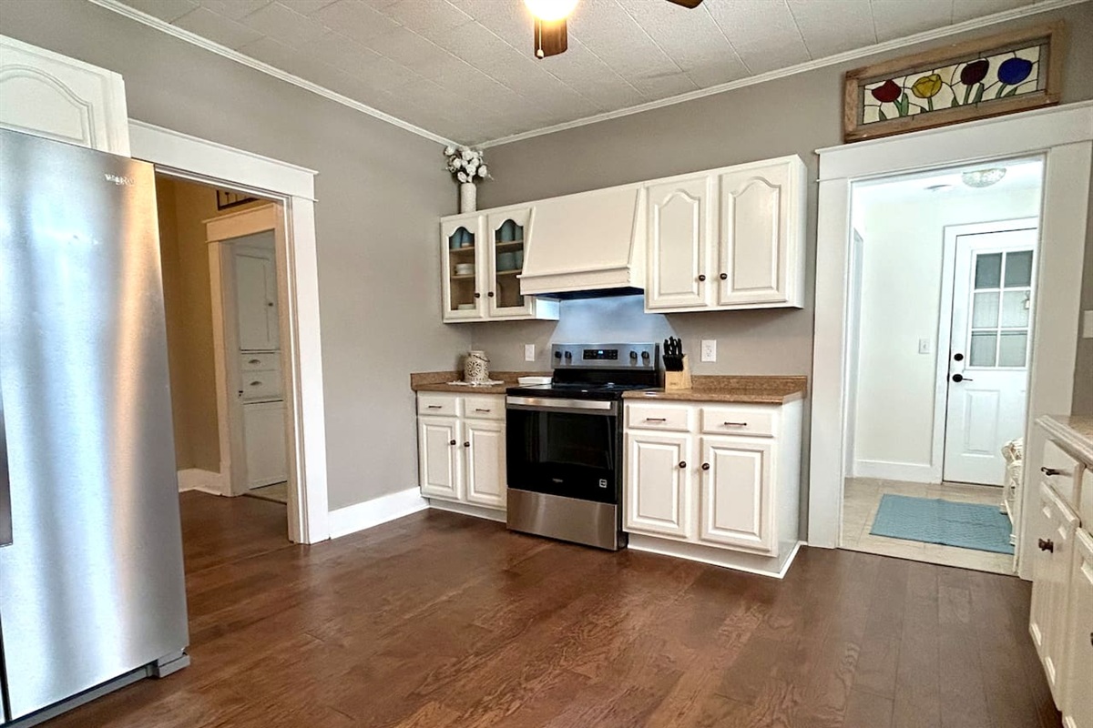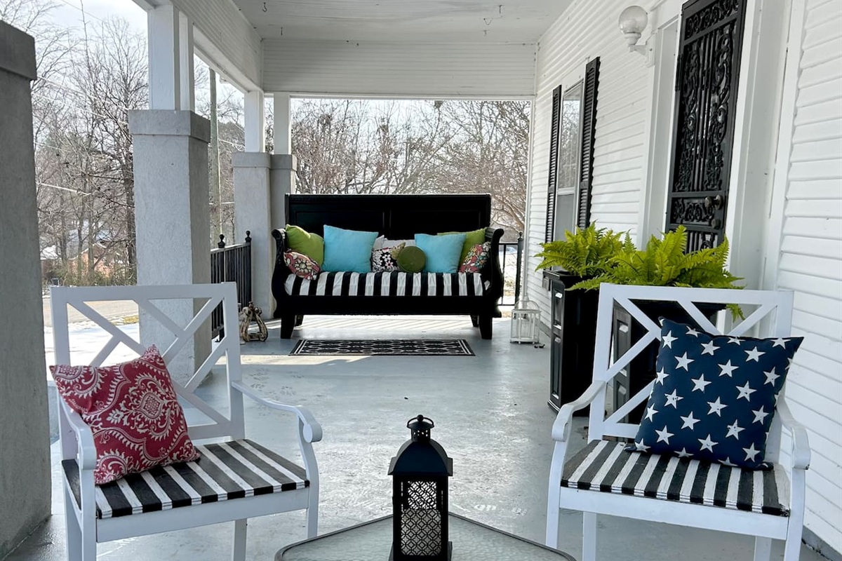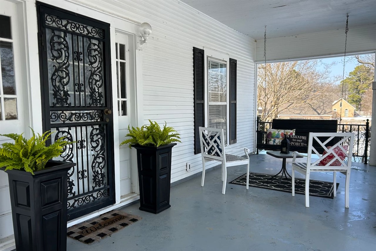 Enjoy outdoor living with three inviting porches and a picturesque tree swing, ideal for relaxing after a day exploring Jonesboro. This home is so close to ASU that you can hear the band practicing on the university grounds. A fenced pet area offers convenience for guests traveling with pets.